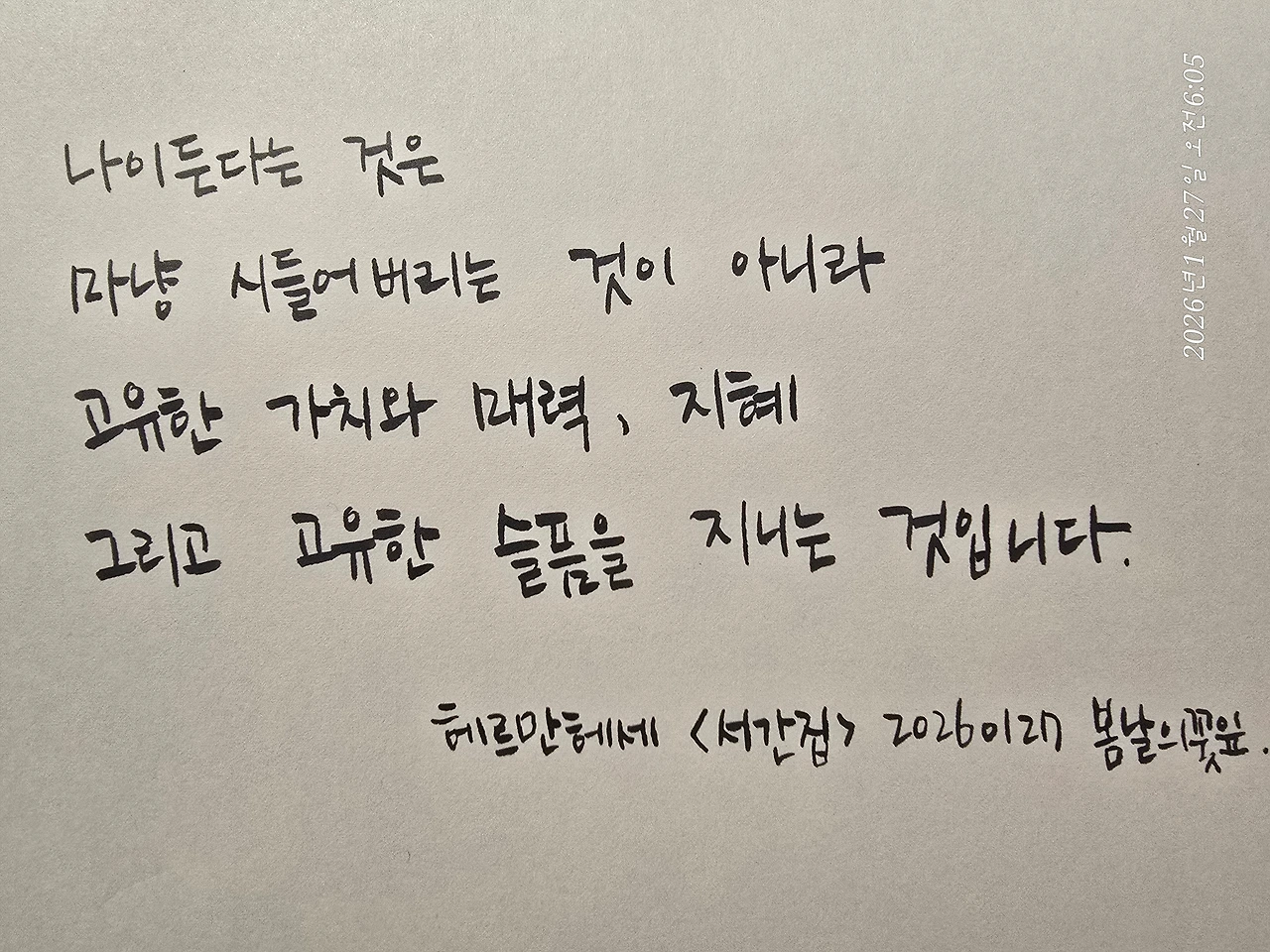 젊음이 지나가고,몸이 예전 같지 않고, 무언가를 시작하려다가도 한 박자 늦게 마음이 따라오는 것 같고.