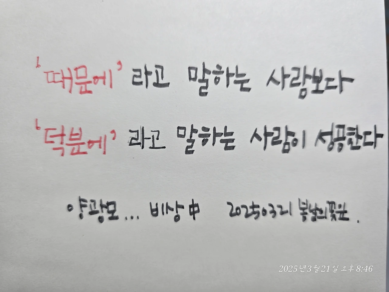 이 문장을 필사하며 다시 한 번 마음을 다잡는다.