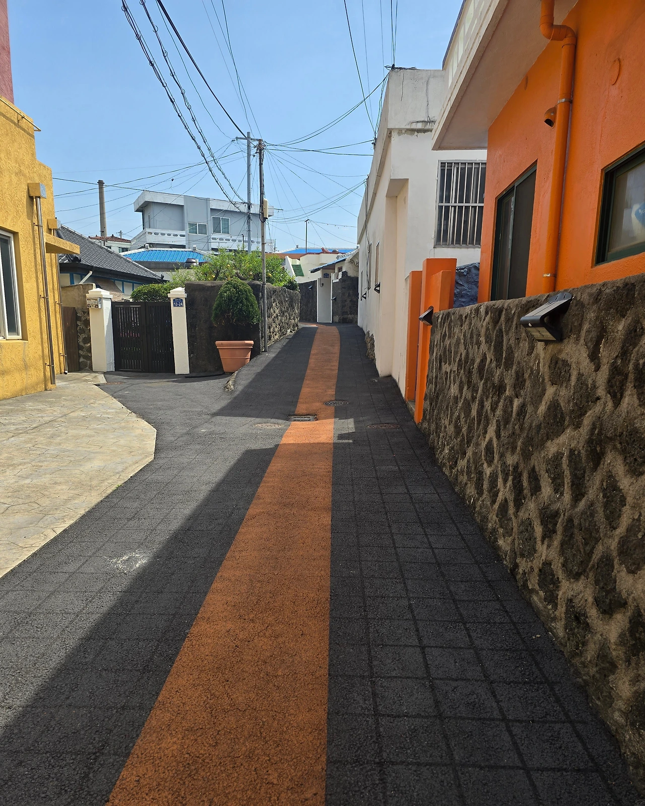 돌담과 낮은 지붕, 그리고 그 사이로 들어오는 햇살이