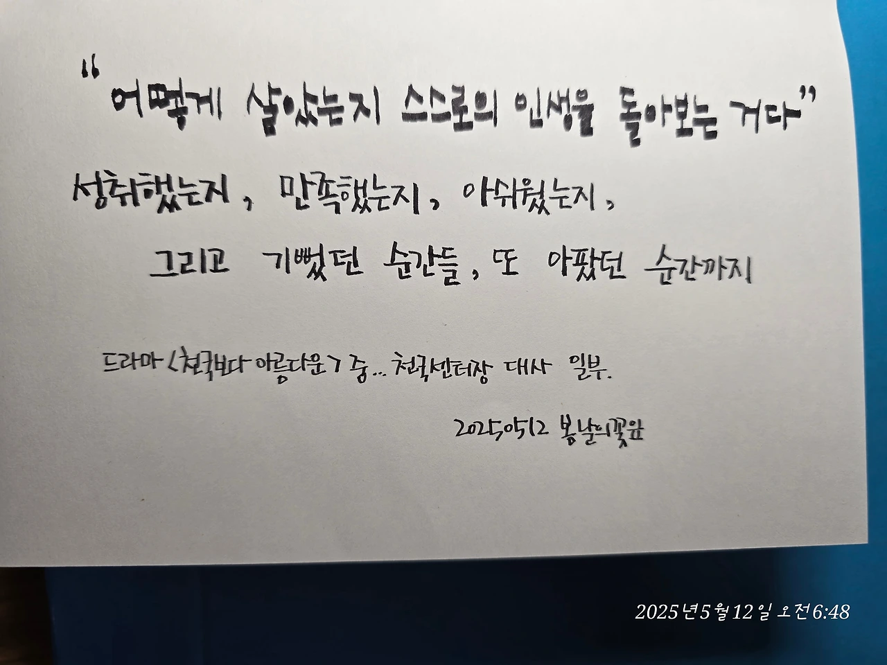 내가 이뤘던 것들, 놓쳤던 것들, 충분히 사랑하지 못한 사람들, 기억조차 흐려졌지만 분명히 빛났던 순간들.