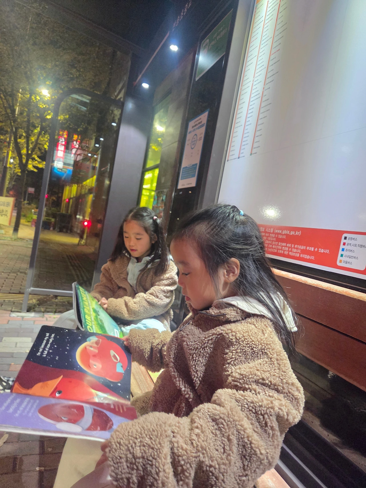 앉고 싶다기에 버스정류장에 잠시 앉아 책을 한 장 읽다가 버스에 올라 한 정거장 가서 내려 집에 돌아오는 이상한 여행을 한다.