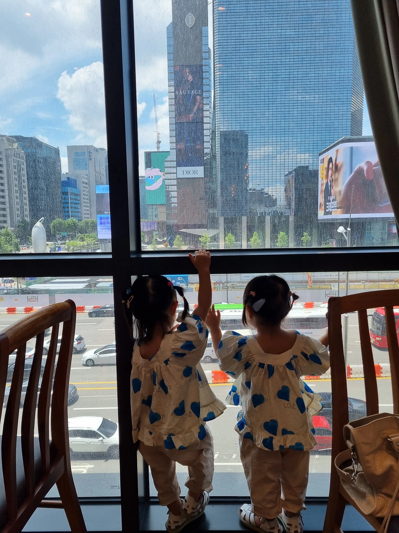 #1 우리 집은 거실에 시스템 통창이 있어 하늘 구경하기가 참 좋다. 밤이면 거실 불을 모두 꺼두고 아이들과 밤하늘의 비행기를 기다리기도 하고, 지나가는 버스며 오토바이를 찾아 먼저 외치는 놀이도 한다. 하루는 고개를 들어 맞은편 아파트를 한참 바라보던 로아가 "케이쿠케이쿠!" 를 외치며 손가락질하더니 손뼉 치며 생일 축하 노래를 부르자기에 가리킨 곳을 올려다보니, 거실 천장에 레일 조명을 길게 설치해 멀리서 바라보면 초를 켜 둔 듯 보이는 한 집이 눈에 띄었다. 이제 케이크집이 불을 켰는지 확인해 노래 부르는 일도 우리의 저녁놀이가 되었다.