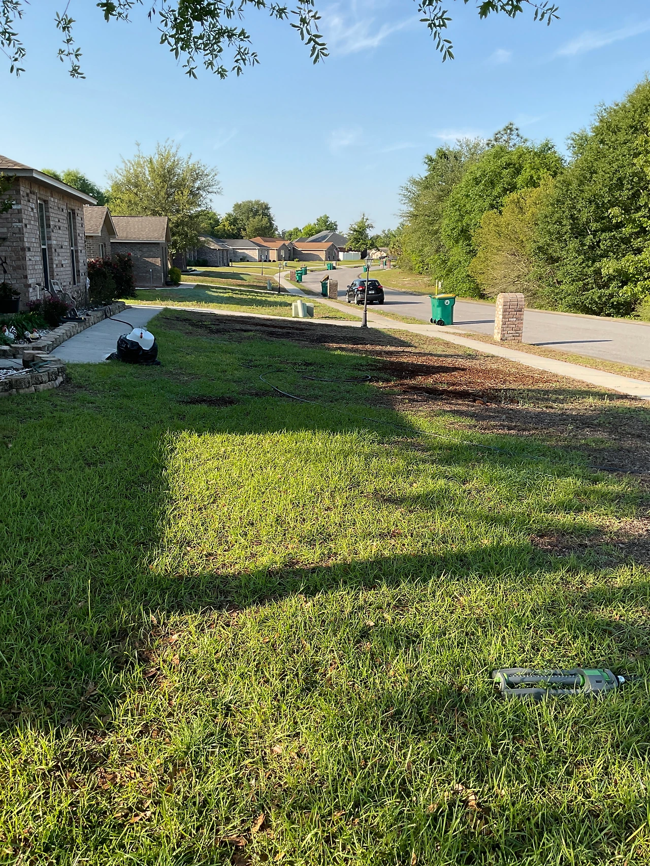 플로리다는 바닷가 근처라 집을 지을 때 콘크리트로 기초를 올리고 그 위에 집을 짓는데 마당이 모레라 흙으로 덮고 흙 위에