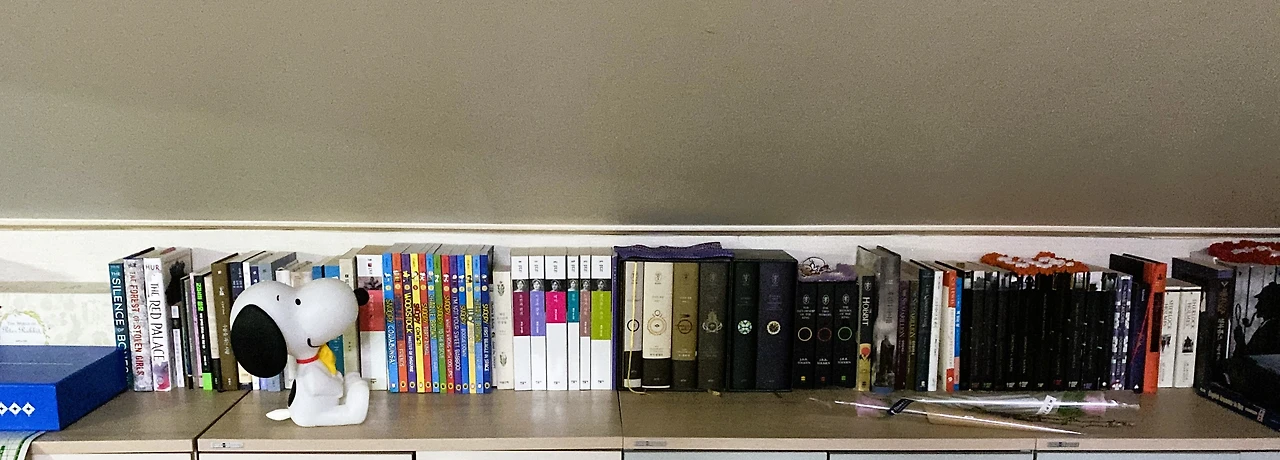 나의 책장 이야기를 하고 싶다. 내가 정말 두고두고 읽을 책만이 모여 있는 곳이다. 나열해 보자면, J.R.R. 톨킨, C.S. 루이스, 도로시 L. 세이어즈, 아서 코난 도일, 찰스 슐츠(스누피-PEANUTS 작가) 제인 오스틴, 윌리엄 셰익스피어, 윤동주, 이어령, 허주은 작가님의 책으로 구성되어 있다. 이 작가님들은 (코난 도일 님만 빼고. 인간적으로서는 그렇게 좋아하는 분이 아니어서. 난 셜록 홈즈만 좋다) 모두 내 최애 작가님들이다. (아, 아직 책을 사진 못했지만 찰스 디킨스 작가님도 진짜 좋아한다.)