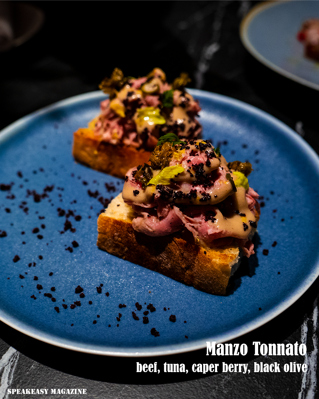 치아바타 위에 소고기, 올리브, 케이퍼 그리고 참치로 만든 소스를 곁들인 디쉬. Tonnato는 피에몬테의 전통적인 소스로 참치와 케이퍼, 앤초비 등을 이용해서 만든다. 설명으로 들으면 별로일 것 같지만 비린 맛이 없고 산미와 감칠맛 그리고 크리미함이 치아바타와 고기와 정말 잘 어우러졌다.