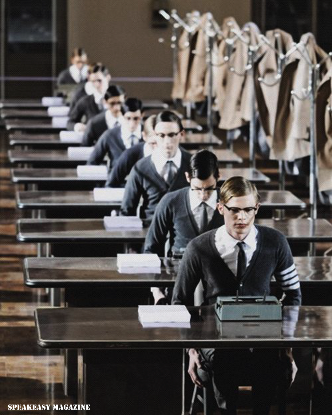 톰 브라운은 원래 5벌의 수트만을 판매하던 수트 전문 브랜드였다. 톰브라운은 기존 획일적인 남성복 수트 시장에서는 볼 수 없던 새로운 테일러링을 선보여 수트 시장에 혁명을 가져온 브랜드다. 우리가 주로 거리에서 보는 가디건과 트레이닝과는 조금 거리가 먼 브랜드. 기존 수트들은 긴 기장, 넉넉한 폼으로 이루어진 컷들이 대부분이었는데 톰브라운은 짧은 기장, 짧은 소매, 복숭아뼈가 드러나는 바지로 지루하고 보수적이라는 이미지로 인기가 떨어지던 수트 시장에 톰브라운 특유의 위트와 쿨함을 보여줌으로써 폭발적인 반응을 이끌어냈다.