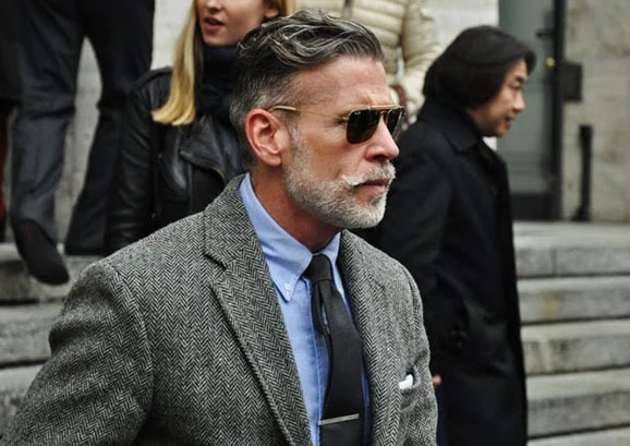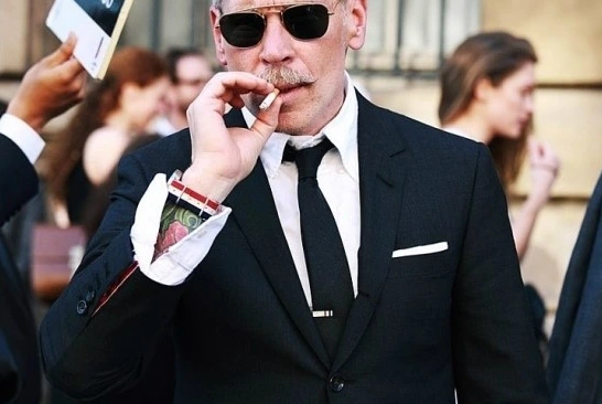 먼저 톰 브라운하면 닉 우스터를 빼놓을 수 없다. 지금의 톰 브라운을 만든 것은 닉 우스터의 도움이 있었기 때문이라고 해도 과언이 아니다. 닉 우스터의 체격과 헤어, 얼굴형을 보면 굉장히 남성적인 면모를 품기는 외모를 지니고 있는데 톰 브라운 풀 착장에서의 닉 우스터는 굉장히 세련된 뉴요커의 모습을 보여준다. 심지어 시계 줄도 삼선 스트랩으로 맞춰 굉장히 위트 있어 보이기까지 한다.