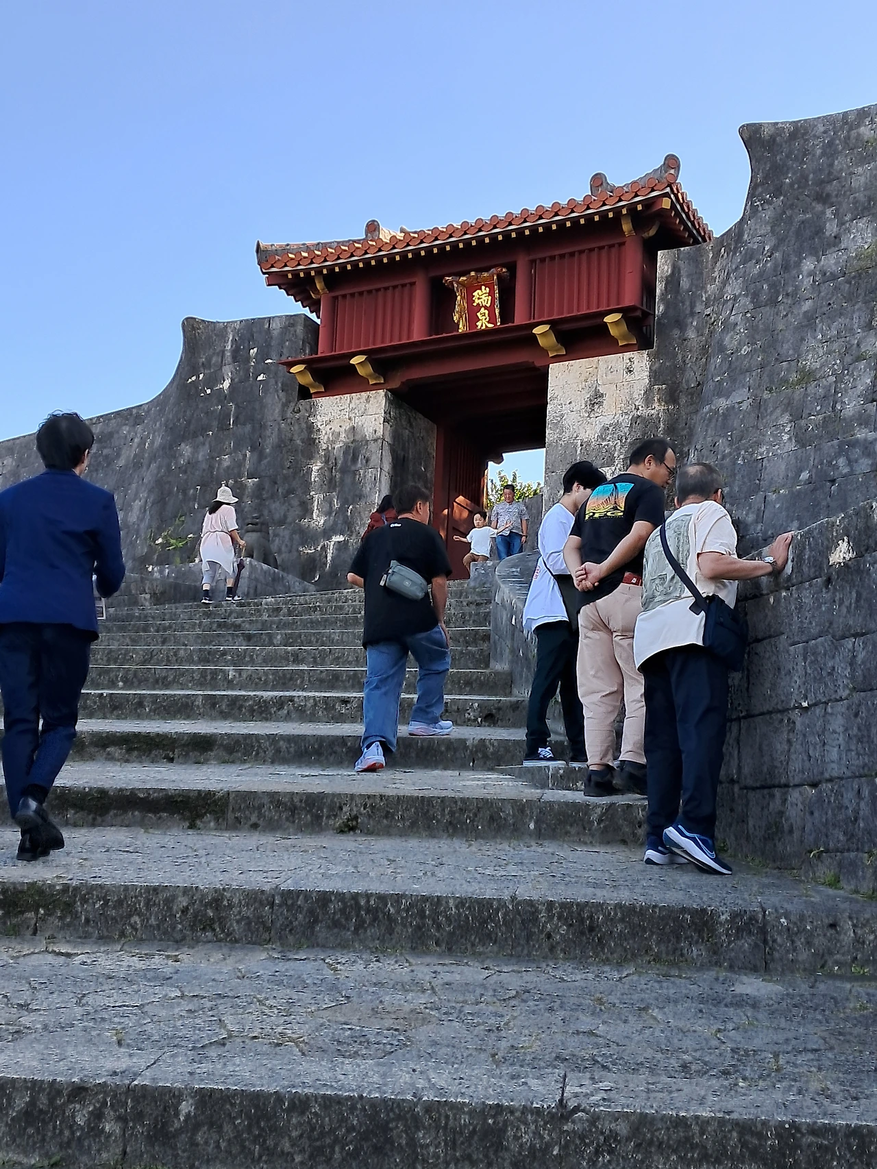 쇼핑할 때는 별로던 남편의 얼굴이 슈리성에서는 엄청 만족한 얼굴이었다. 슈리성에는 수학여행단이 많이 와 있었다. 날씨도 많이 도와줘서 시원한 바람이 머리카락을 스치고 지나갔다.