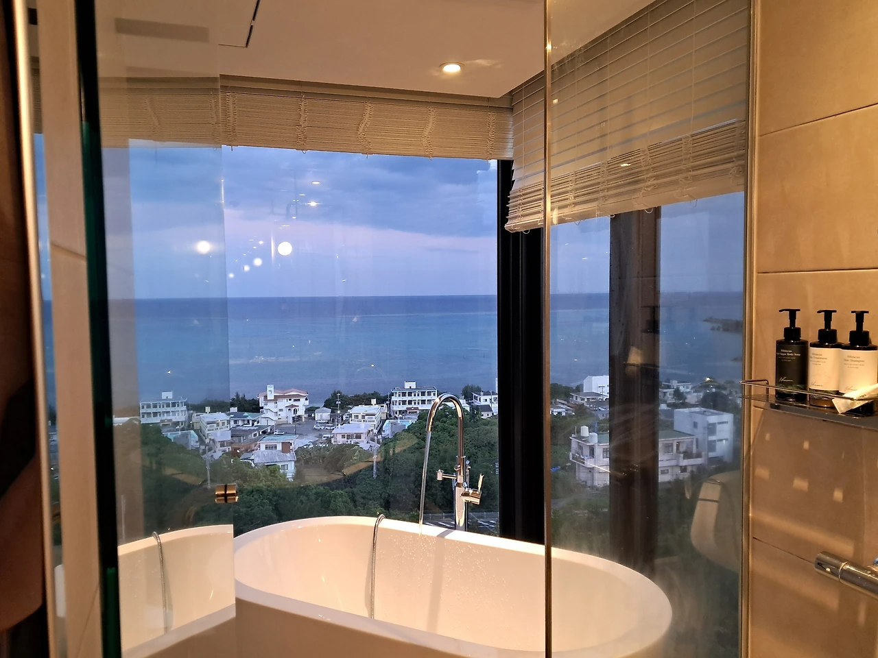 아침 해가 뜨자 욕조에 들어갔는데 욕조 뷰가 장난이 아니라 한 컷 찍었다.