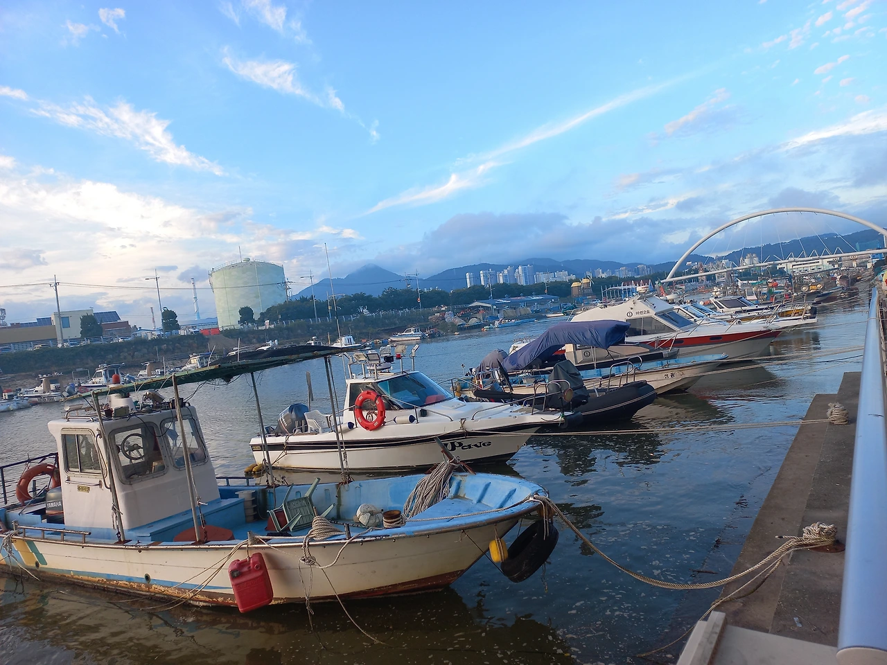 장림 포구에 있는 부네치아라고 하는 곳이라 했다. 멀리 멋진 아치형의 다리도 보이고 가장자리로는 많은 요트들이 줄지어 있었다.