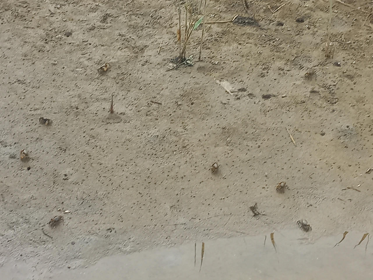 습지 속에 달랑게랑 엽낭게가 기어 다니는 모습이 보였다.