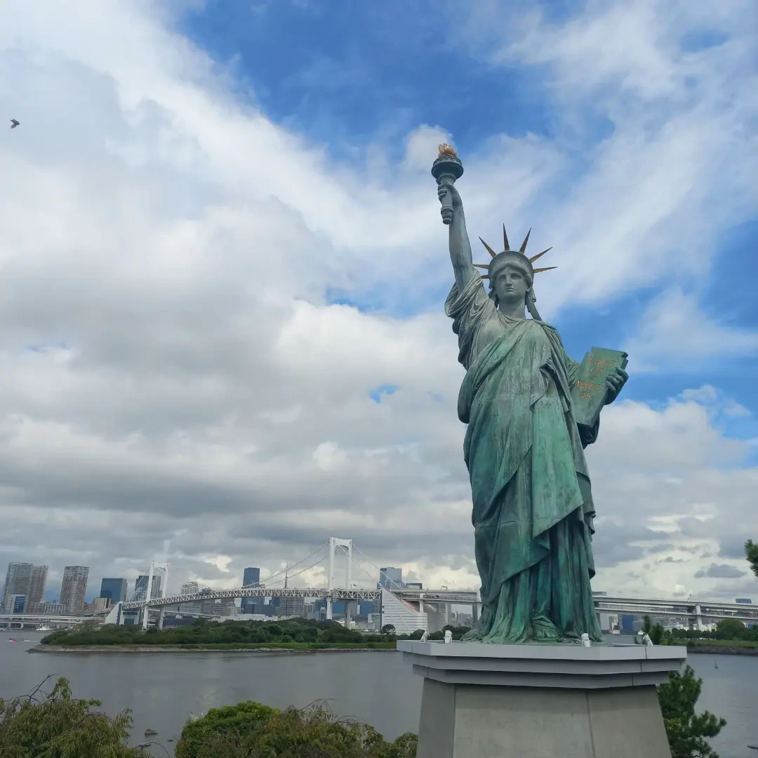 오다이바에 자유의 여신상이 있다. 까닭은? 1998~1999년은 일본 내 프랑스의 해로 지정되었다.이를 기념해 파리와 도쿄의 화합의 일환으로 파리 센느강에 세워져 있던 자유의 여신상을 1998년 4월에서 1999년 1월 사이 오다이바 해변공원으로 가져오게 된다.레인보우 브리지와 함께 어우러진 자유의 여신상은 많은 사람들의 사랑을 받게 되고 자유의 여신상이 파리로 귀환되자 도쿄도는 여신상 제작을 추진하게 된다.일본에서 신청한 일본판 자유의 여신상이 파리로부터 정식 허가를 받고 2000년 12월 22일 오다이바 자유의 여신상이 탄생하게 되었다. 나를 오다이바로 부른 것도 우리 아들이 자유의 여신상 앞에서 레인보우 브리지를 배경으로 찍은 사진 때문이다. 오다이바는 해변에서는 수상 유람선, 수상 버스가 있어 잘만 이용하면 더 효율적으로 여행 할수 있는데 아사쿠사까지 가는 수상버스가 있어서 알고 갔다면 교통비도 아끼고 도쿄의 경치를 더 잘 감사할 수 있을 듯하다.