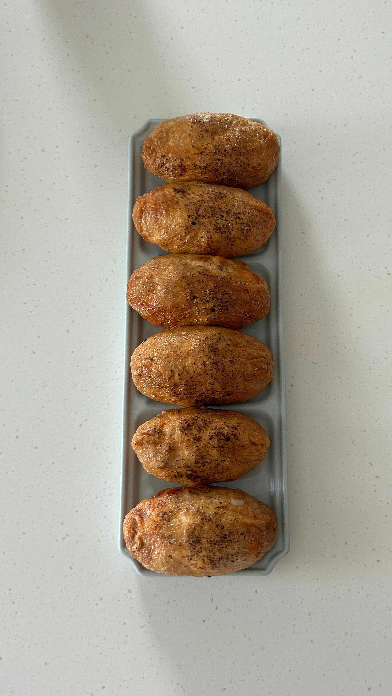 3. 유부 윗면을 토치로 살짝 그을려 불향을 입힌다.