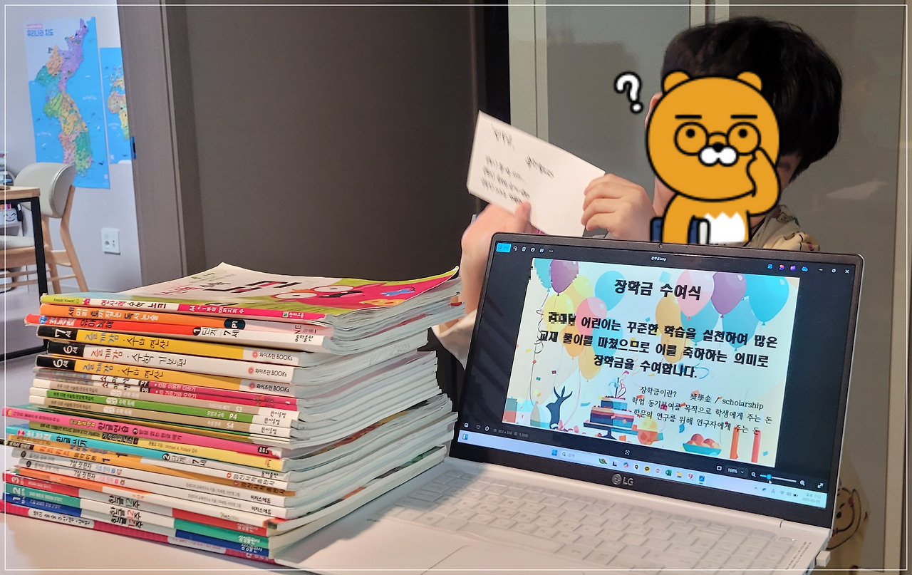 장학금이므로 반드시 책 1권 구매 후 다른 용도로 쓸 수 있다는 조건으로 엄마의 욕심 한 스푼 추가!