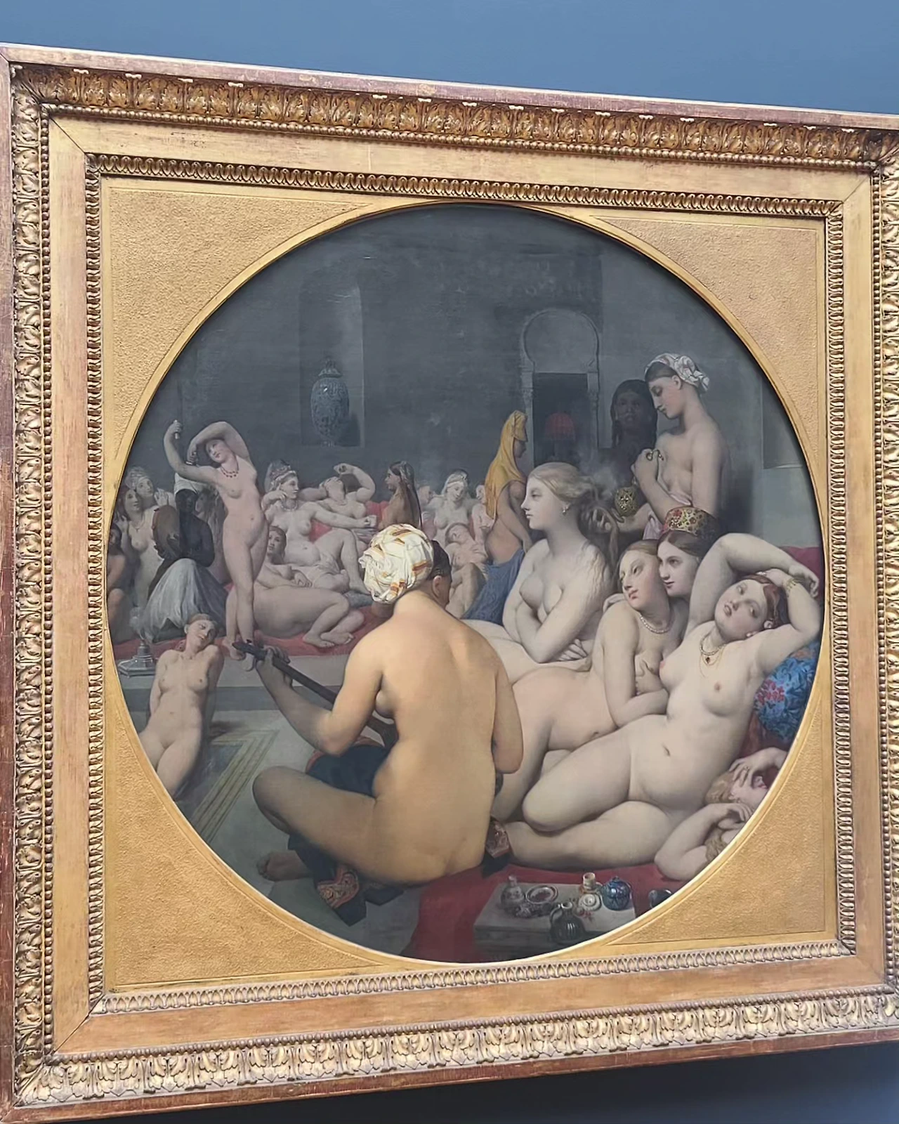 지난번에 왔을 때는 <터키탕>이 일본에 출장을 가 있었다. 그 당시엔 그리 유명한 그림인지도 모르고, 그저 옆에 같이 다니던 미술 전공한 형이 <터키탕>을 보러 가자길래 따라간 것이었는데, 보지 못했기 때문인지 그 이름이 머리에 남아 이번엔 꼭 보고 싶었다. <터키탕>이 있는 쉴리관은 드농관과 달리 아주 조용했다. 발걸음소리가 방에 울릴 지경이었다. 앵그르 작품들이 모여 있는 방에 가니 누군가 습작하고 있는 터키탕이 보였다. 내 기억에는 지난번에 왔을 땐 고개를 들어 올려야 볼 수 있는 곳에 위치해 있었는데, 이번엔 내 눈높이 즈음에 위치해 있었다. 앵그르도 꽤 좋아하는데, 이 사람은 대표적인 신고전주의 화가이다. 역시 난 꼰대임이 틀림없다. 고전, 고전, 고전!