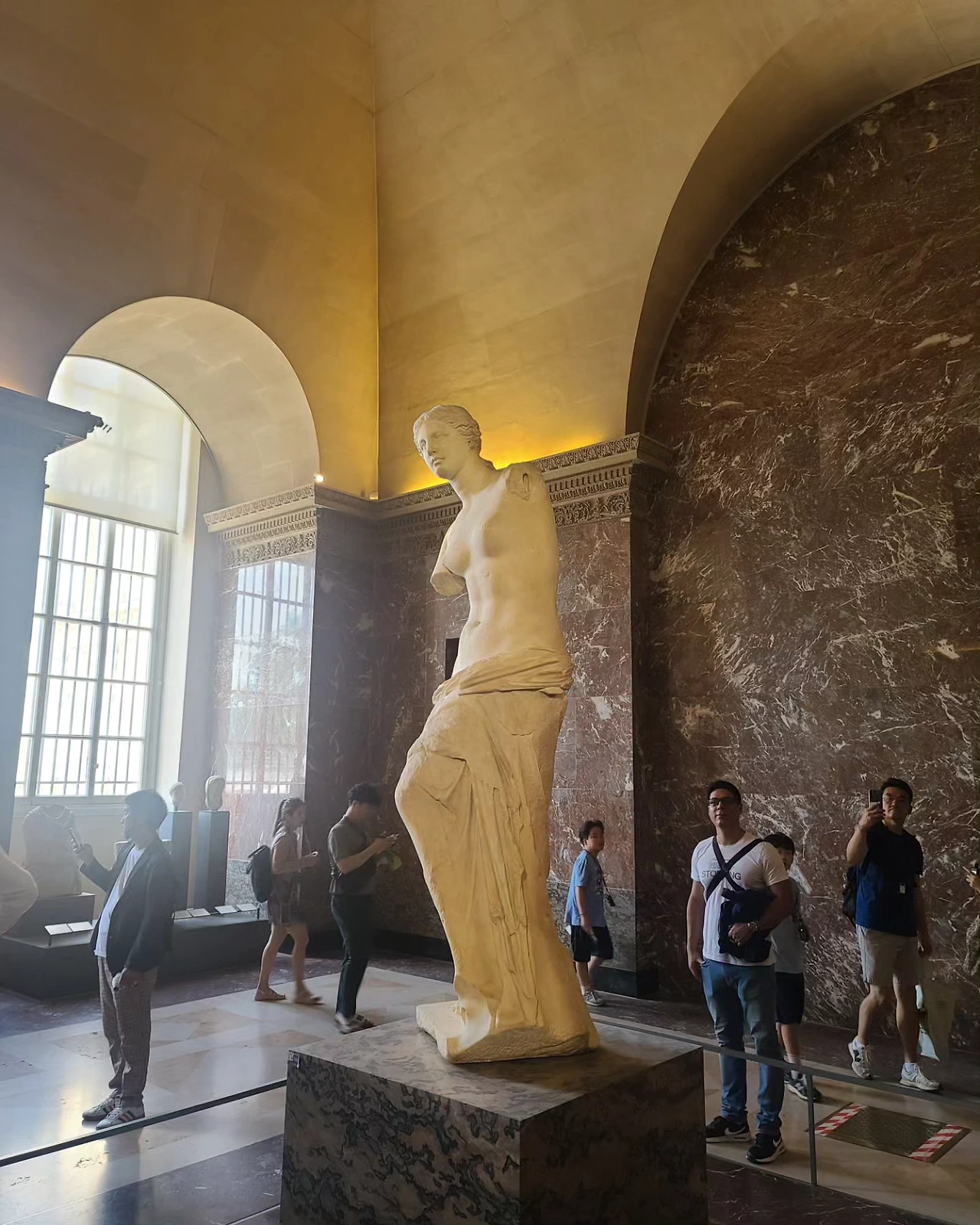온라인 예약자들이 먼저 입장하고, 한 30분가량 지나니 우리도 루브르에 입성할 수 있었다. 박물관 내부 티켓 부스에서도 줄을 서서 기다렸는데, 옆에 보니 카드 결제 가능한 기계가 따로 있어 줄을 서지 않고 바로 티켓을 살 수 있었다. 모나리자부터 다 같이 보고서 흩어지자, 이미 말이 되어 있어서, 셋이 입장하곤 모나리자가 그려진 화살표를 따라 발걸음을 옮겼다. 후에 여행 다녀와서 곰곰이 생각해 보니 우리는 운이 좋았는데, 모나리자가 어디 있는 지도 모르는 채 ‘빨리빨리’ 하며 입장한 관이 꼭 마침맞게 모나리자가 있는 ‘드농관’이었다. 어쩐지 그 넓은 루브르에서 너무 빠르게 모나리자를 찾았다 싶었다.