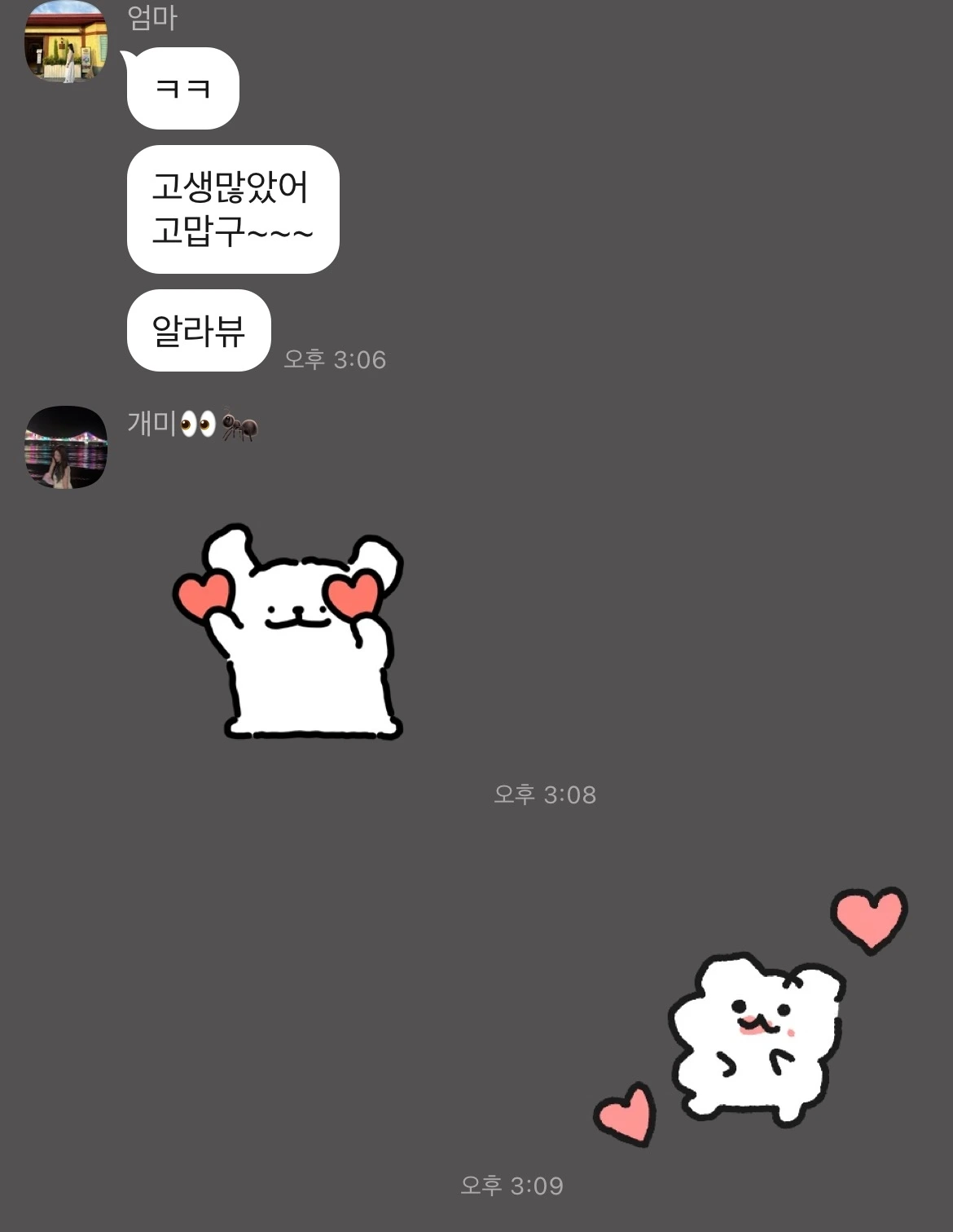고함치고 폭력을 가한 당신에게서 도망치듯 집을 나서야만 했던 시절을 넘어, 사랑을 얘기할 수 있는 네 사람이 되었음에 감사합니다. 결국 당신도 날 사랑했다는 것을. 지금도, 앞으로도 사랑은 이어질 것이란 것을 알게 된 지 3년이 되었습니다. 때문에 저는 세 살입니다. 정말이지 사는 재미가 있습니다. 이제야 살아가는 것 같아요. 앞으로 무슨 인생을 쌓아갈지 기대됩니다, 우리 가족이.