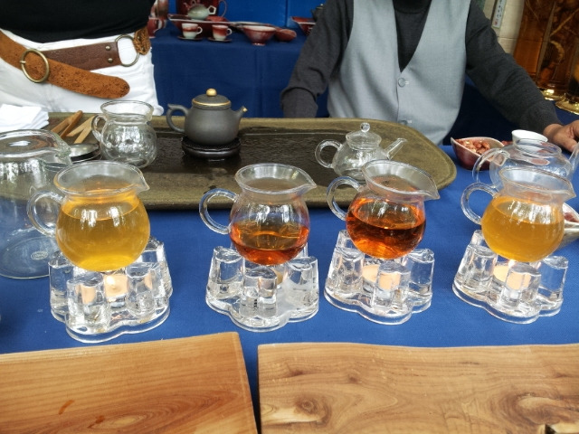 이리저리 구경하다가 보니 발이 좀 피곤하기도 하고 조금 쉬어 가고 싶기도 해서 차 파는 천막에 들러 차 한잔 맛보고 가려고 앉았는데, 사람 좋아 보이는 스님 행색의 점주가 이 차 저 차 자꾸만 따라준다.