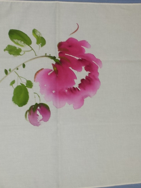 작가가 하얀 천에다 꽃을 직접 그려 넣어 만들었다는, 백화점에서는 구경하기 힘든 개성 있는 작품들이 촌색시같이 수줍은 모습으로 다가와 내 손을 잡길래 아내에게 줄 수건 두 장과 무릎덮개 한 장을 샀다.