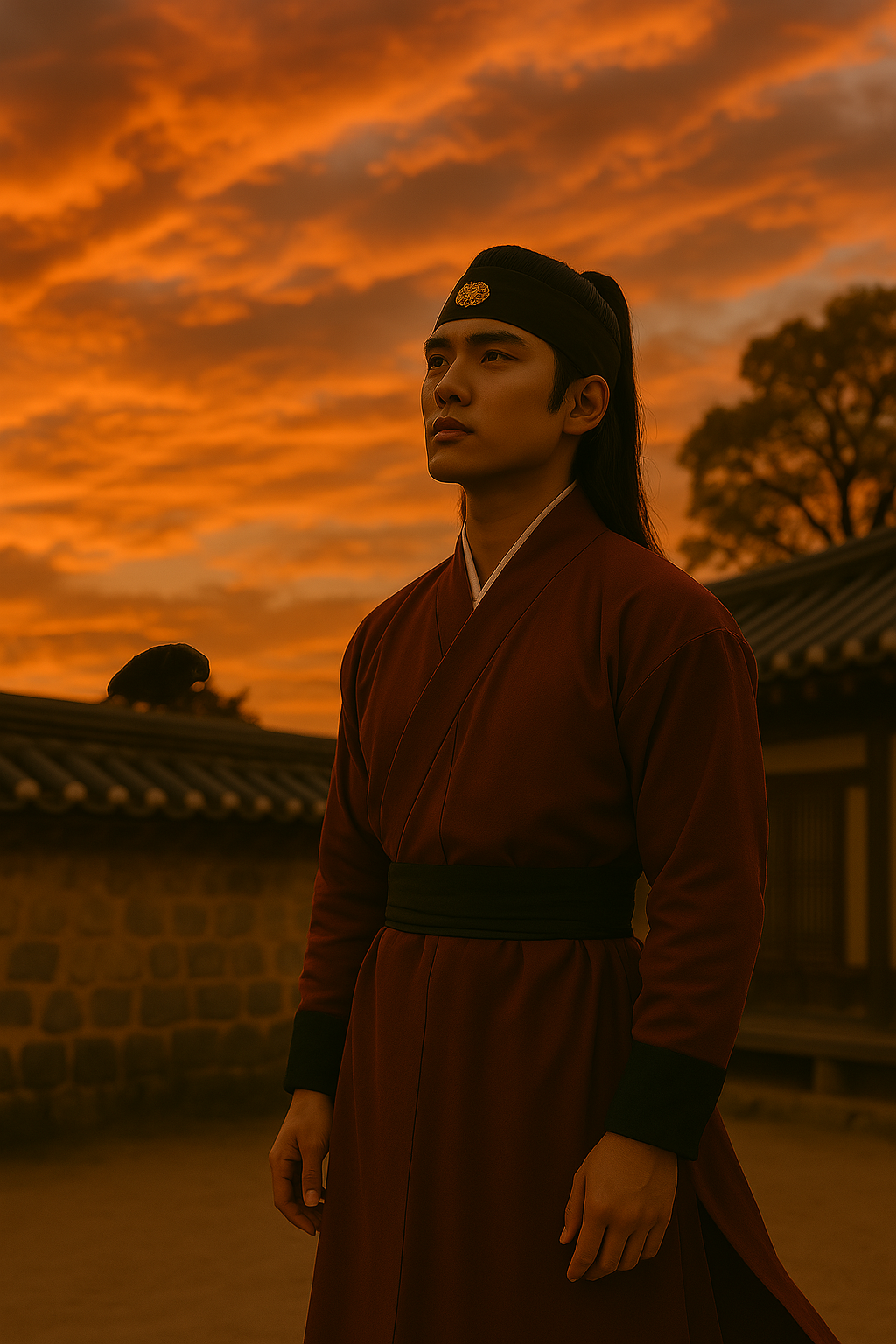 늦은 오후, 서화는 사랑채 문 앞에 앉아 있었다.