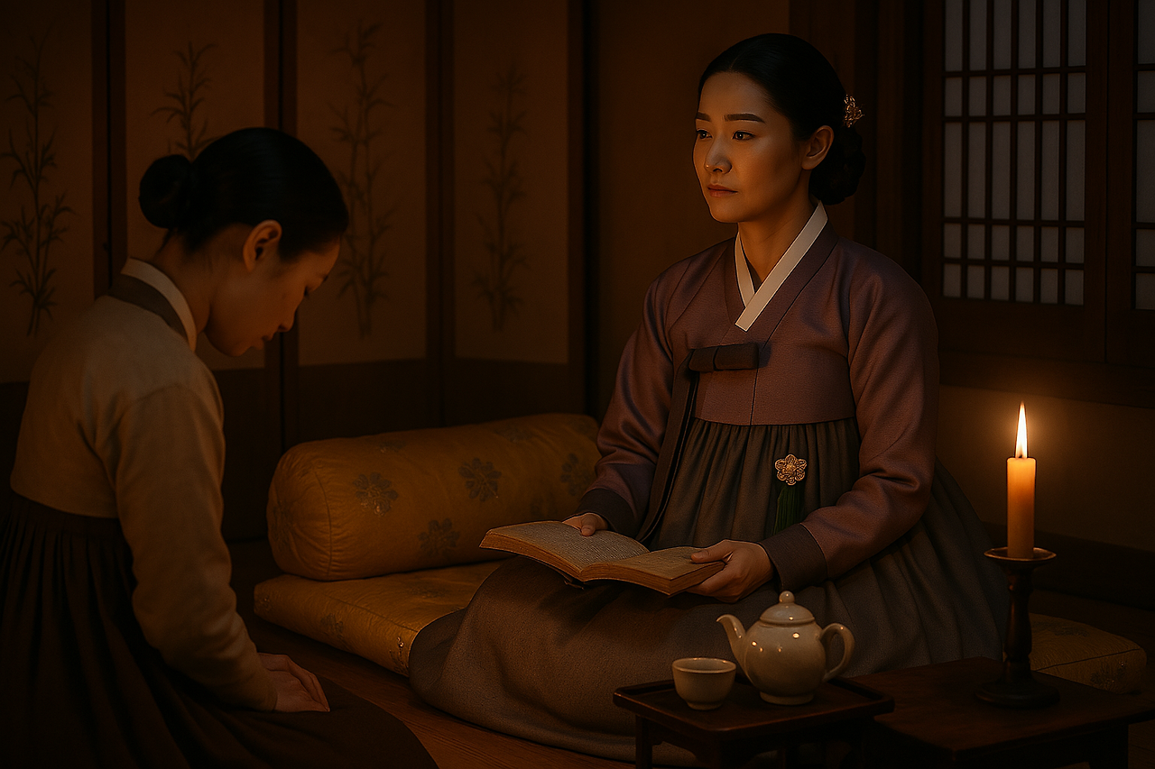 윤 씨 부인은 그제야 책장을 넘기던 손을 멈췄다.