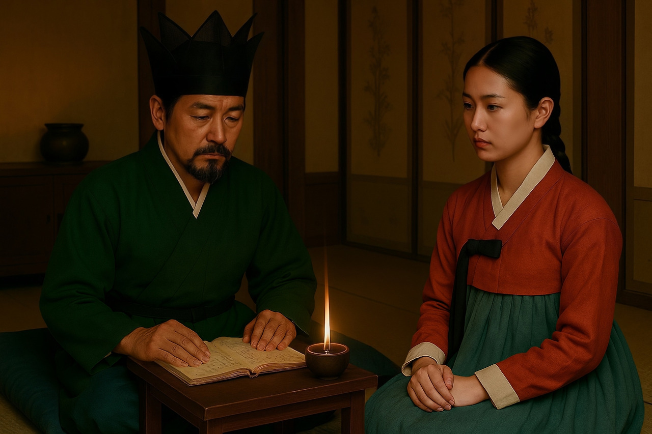 그 순간, 창호 밖에서 낮고 서늘한 목소리가 스쳤다.