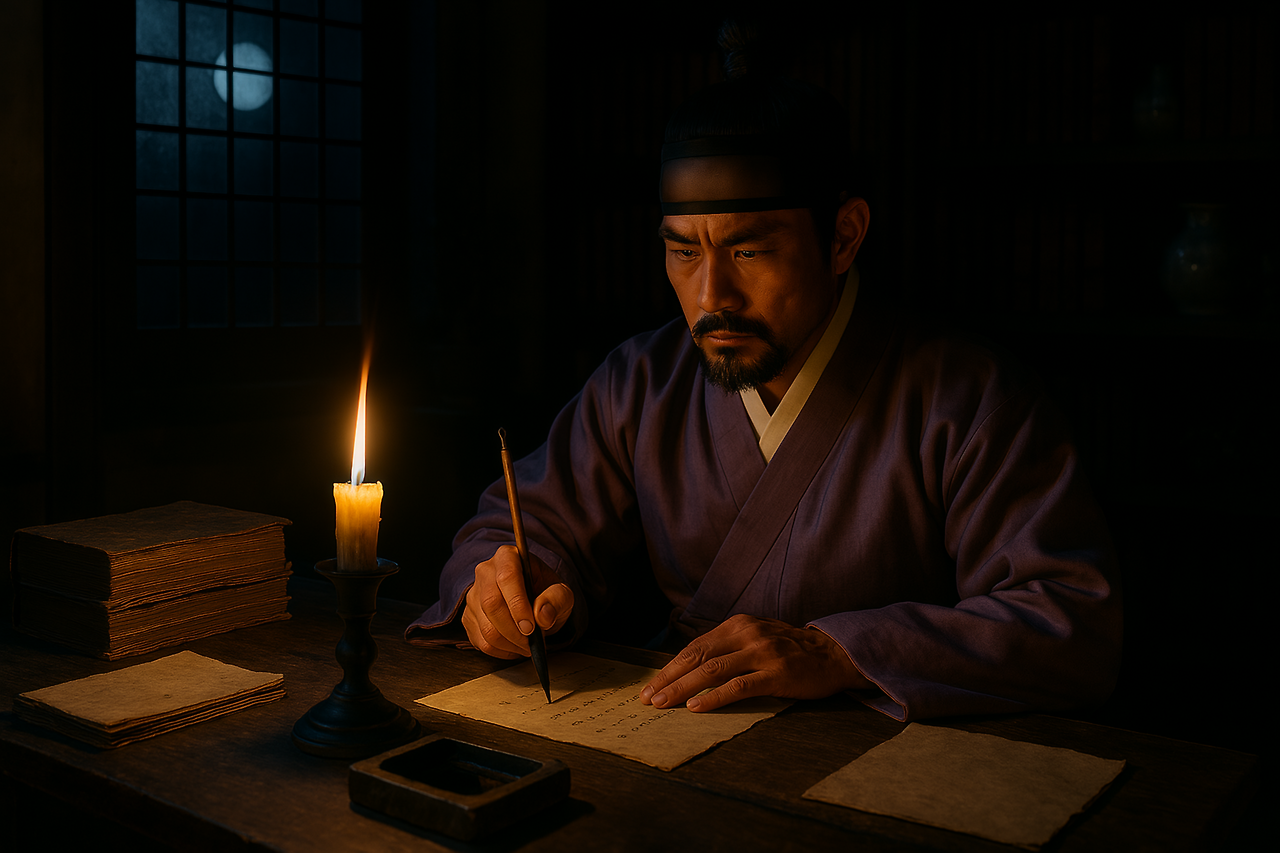 그는 오래 바라보다가 서찰을 단단히 쥐었다.