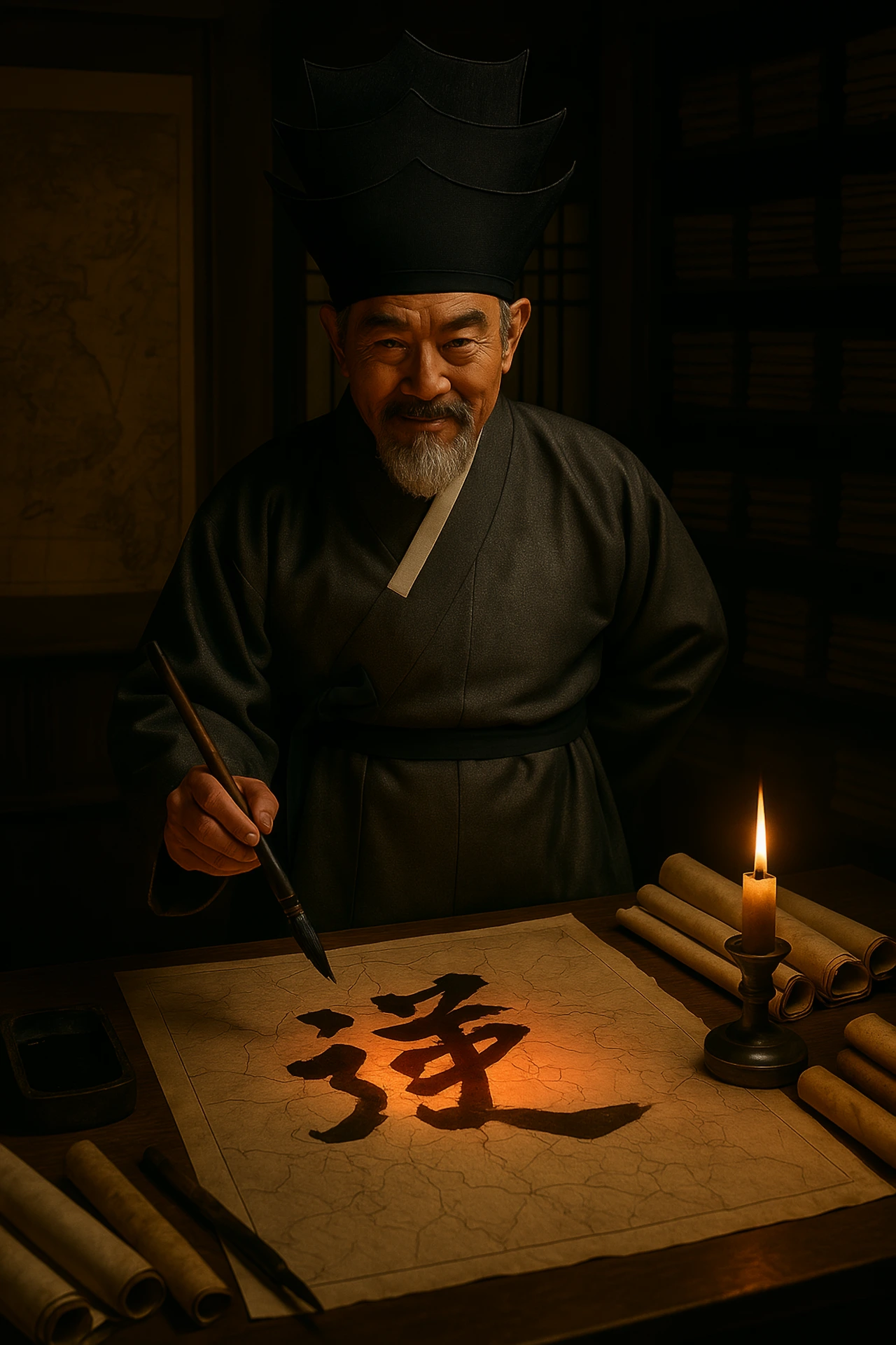 손끝에 먹 냄새가 배어 나왔다.