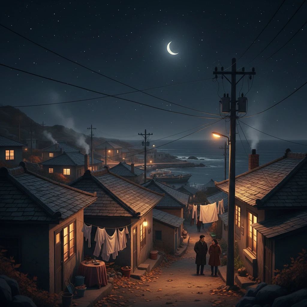 각 집 부엌 창마다 노란 불빛이 켜지고,