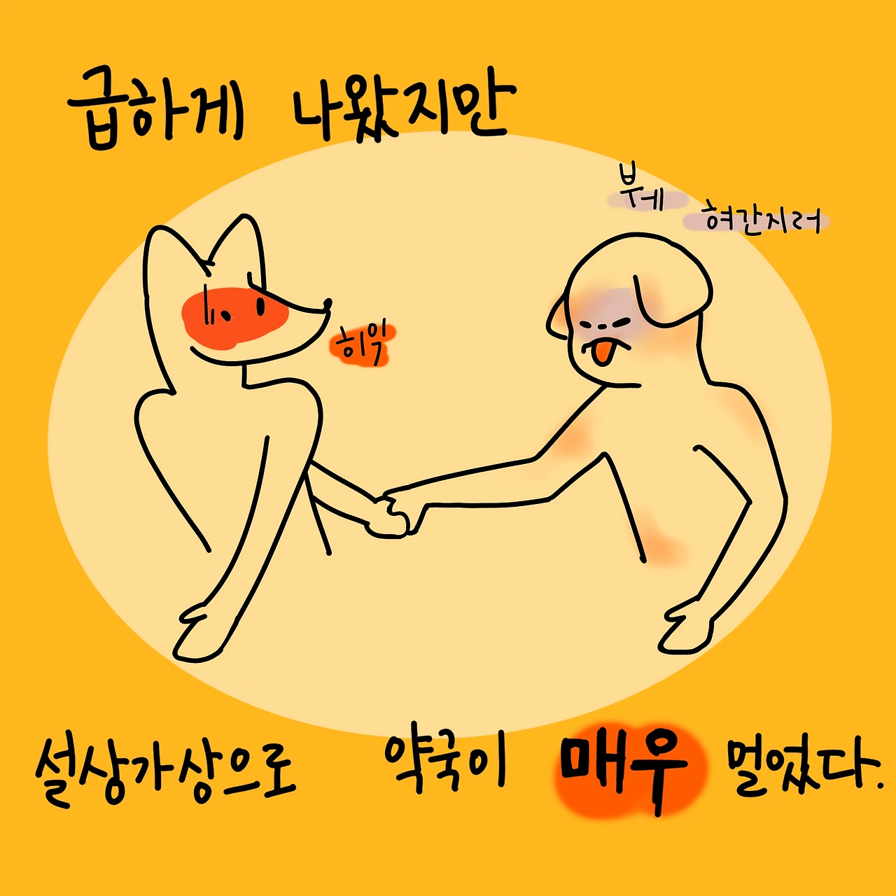 빠르게 약국으로 행하는 중에 침착하려고 무던히도 노력했습니다. 처음으로 부모님과 거리가 먼 상태에서 벌어진 사고에 불안감이 치솟았지만 함께 있는 우 씨까지 당황시키고 싶진 않아서 최대한 불안을 눌렀습니다.