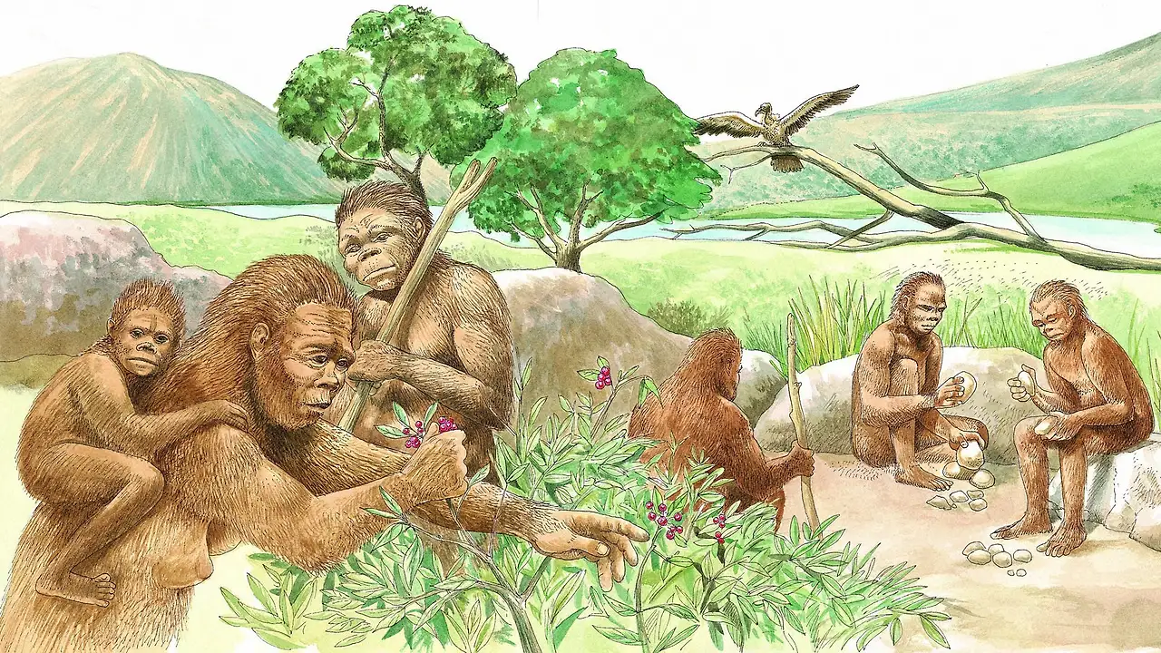 구석기 시대 인류의 모습을 상상하려면 아기가 커가는 과정을 떠올리면 쉽습니다. 출생한 아기는 시간이 지나면서 기어다니고 걷기 시작합니다. 옹알이를 시작으로 점차 말을 하기 시작합니다. 비슷한 시기에 손으로 도구를 활용하기 시작합니다. 인류의 진화 모습도 같습니다. 처음에는 네발로 기어다니다가 점차 두발로 걷는 직립보행을 시작했습니다. 점차 지능이 발달하면서 언어와 불을 사용했으며 나중에는 도구도 제작하여 활용하기 시작했습니다. 이런 모습은 지구상에 존재하는 모든 유인원에게 나타난 공통적인 특징이었습니다.