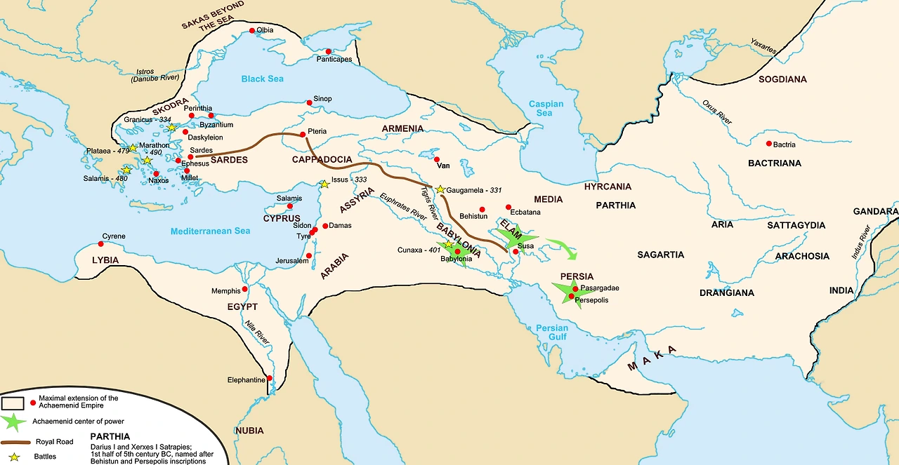 아케메네스 페르시아 제국 영역(이집트, 유럽, 서아이사에 걸친 대제국)