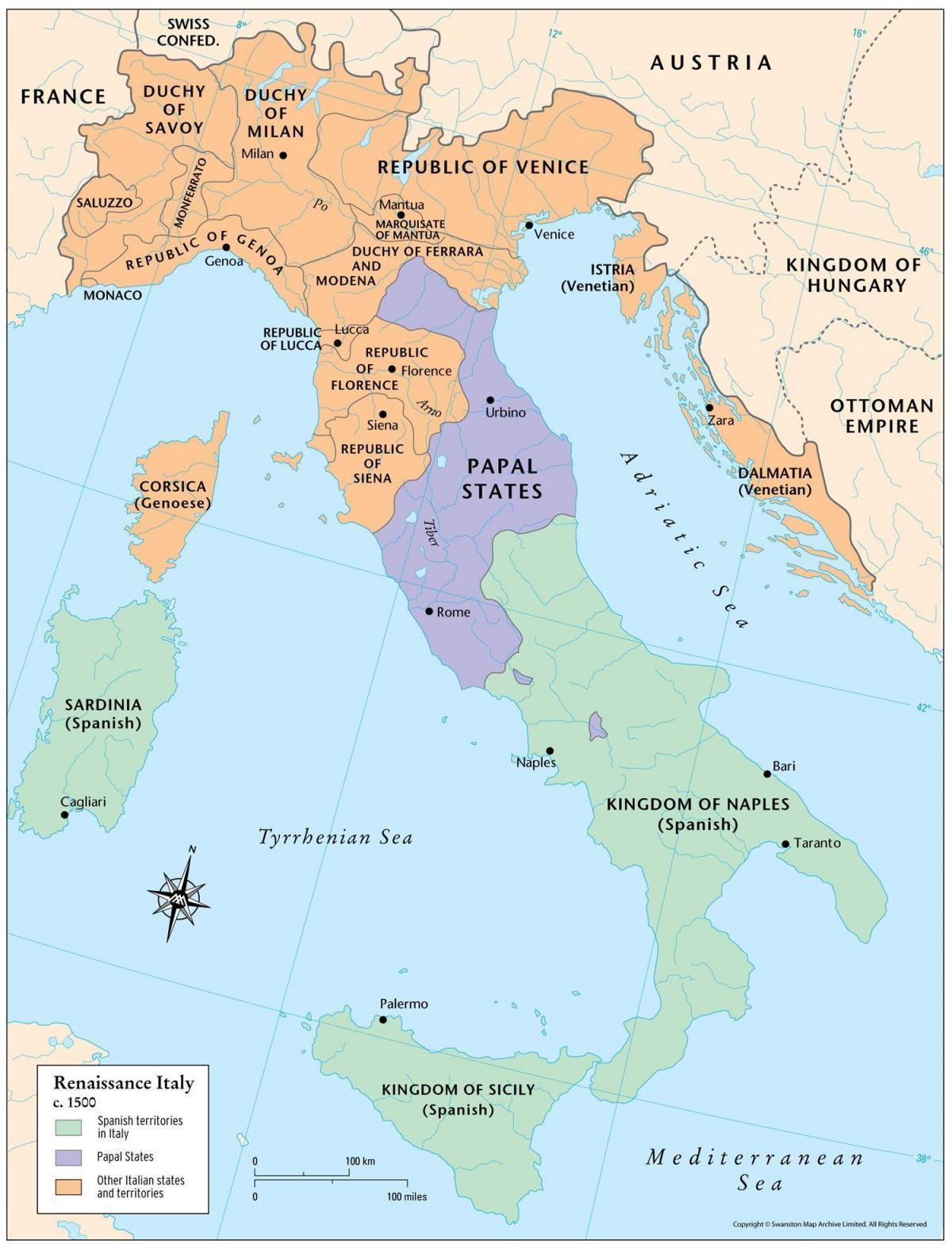 기원후 1270년경을 즈음하여 십자군 원정은 종료됩니다. 성전(예루살렘)을 탈환하려던 시도는 실패로 끝납니다. 그러나 전쟁으로 인해 새로운 무역로가 개척되었습니다. 바로 아시아에서 들어오는 무역로가 개통된 것입니다. 이로 인해 이탈리아의 주요 도시(베네치아, 피렌체, 제노바 등)는 엄청난 이득을 누립니다. 여기에 더해 동쪽에서 이슬람의 침략을 막아주던 동로마 제국도 쇠퇴의 길로 접어듭니다. 이슬람을 피해 같은 기독교 국가로 피난온 동로마인들은 이탈리아에 정착합니다. 그러면서 예전 로마가 가지고 있던 문화유산들에 대해 알려주면서 과거 이탈리아가 로마제국의 중심지였음을 일깨워 줍니다. 게다가 사람들이 십자군 원정에 실패하면서 교황의 권위에 의문을 가지기 시작합니다.