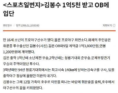 프로야구 역사에는 20여년이 넘도록 깨지지 않은 기록이 하나 있다. 역대 최연소 프로야구 선수. 그 타이틀의 주인공은 만 16세에 OB 베어스 유니폼을 입은 한 프로야구 선수, '김봉수'가 갖고 있다.