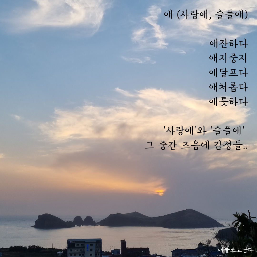 세월이 흘러 이제는 '사랑애'와 '슬플애' 그 사이를 서성일 수 있는 품이 생겼다. '애정하다'만 절절히 느끼던 소녀는 애지중지하며 애타며 애틋하며 애달프며 애처로운 것들을 조금씩 느끼는 나이가 되었다.