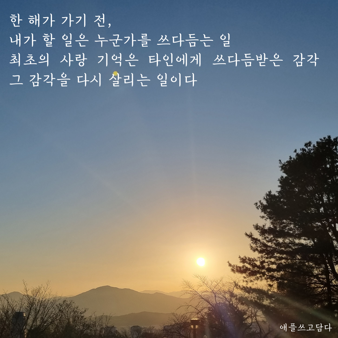 한 해가 가기 전, 내가 할 일은 누군가를 쓰다듬는 일. 잊지 말아야 한다. 최초의 사랑 기억은 타인에게 쓰다듬받은 감각. 그 감각을 다시 살리는 일이다. 그리고 그 감각을 새해가 되면 더 소중하게 가꾸는 일. 그렇게 한 해를 시작해야겠다. 그것으로 충분할 2023년을 기대하며.