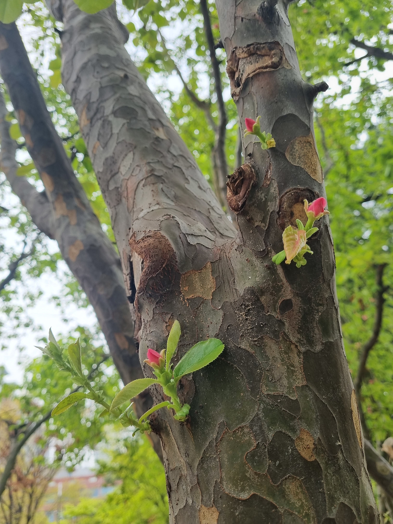 이 나무는 무슨 나무일까요? 모과나무예요. 봄비 내린 후에 공원에 갔더니 연한 붉은색 꽃이 화사하게 핀 거예요. 얼마나 반갑던지 탄성이 절로 나왔어요. 모과나무는 5월에 꽃을 피우는데.. 날이 따뜻했나 봐요.