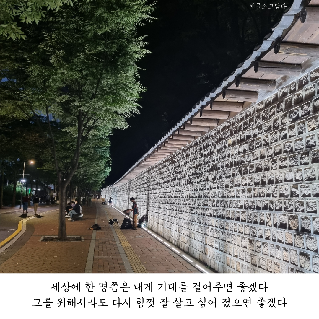 세상에 한 명쯤은 내게 기대를 걸어주면 좋겠다. 그 한 명을 위해서라도 힘껏 잘 살고 싶어 졌으면 좋겠다. 내 앞에 주저앉아 물 한 모금 달라는 사람에게 기대어 쉴 수 있는 푹신한 의자가 되고 싶다. 부족하고 아쉬운 인간이기에 사람에게 기대하고 기대며 살고 싶다. 못생기고 철없는 내 모습도 그럭저럭 안아주면서.. 사람들 앞에서 잘 웃고 잘 울면서.. 신적으로 말고 인간적으로다가 살고 싶다.
