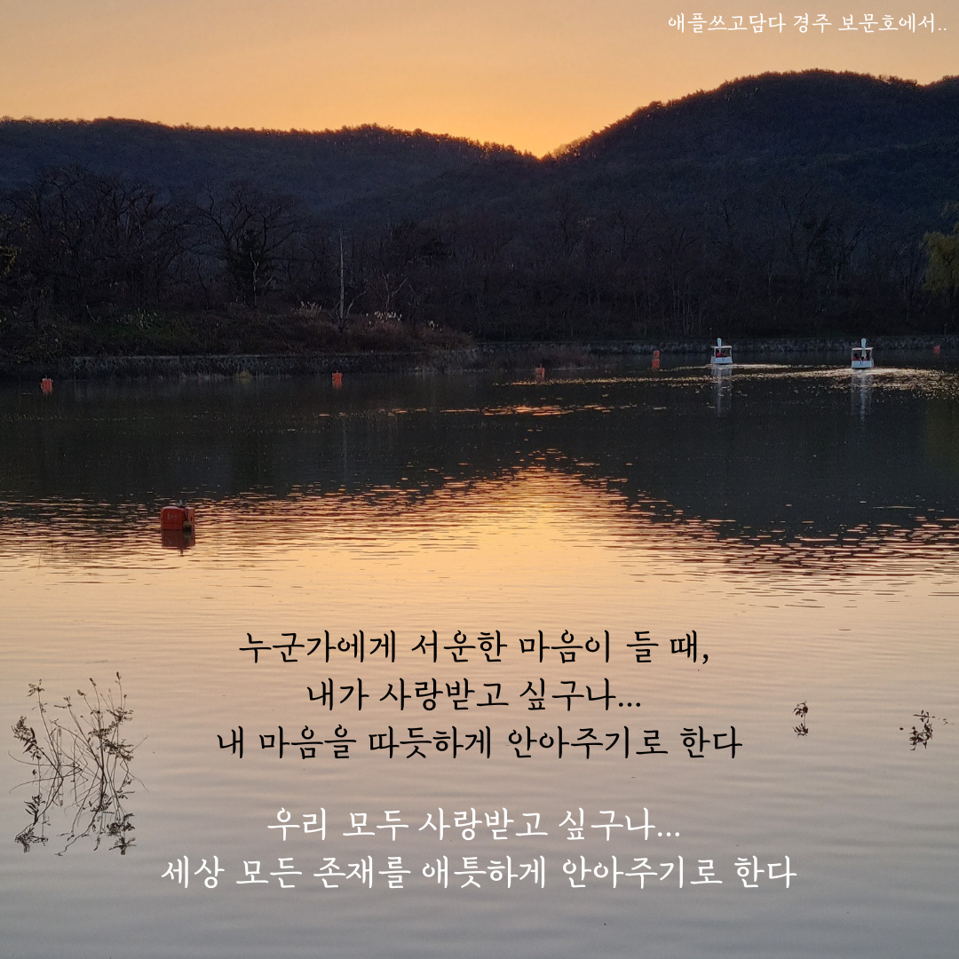 누군가로 인해 서운하고, 때로 누군가를 서운하게 하며 서운함을 주고받으며 살아가는 인생사.. 우리 모두 사랑받고 싶구나... 생각하면 세상 모든 존재가 애틋하게 다가온다.