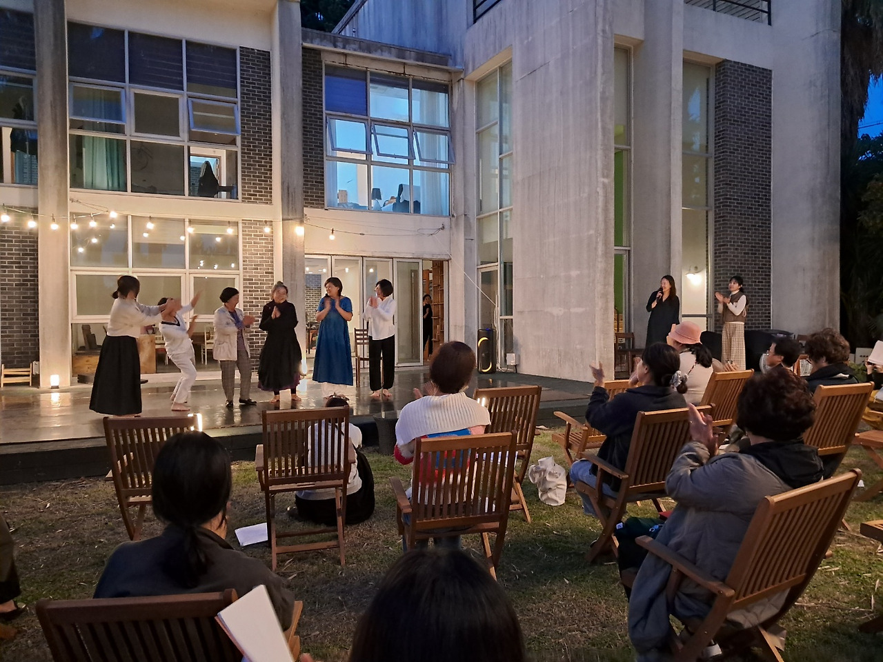 사회를 봤던 무용 공연은, 할머니와 안무자들이 할망들의 삶의 이야기를 춤공연으로 만들어 무대에 올린 작품이었는데 한국무용, 현대무용, 탱고, 힐링댄스 등을 선보였다. 모든 무대가 훌륭했지만 할머니와 안무자가 서로 손을 맞대어 춤을 추던 장면에 많은 분들이 눈물을 흘렸다. 손마디 마디가 틀어지고 어긋난 할머니의 고운 손이 자꾸만 눈에 들어와서 나 역시 울컥했다. 내가 춤을 좋아하는 이유는 말하지 않고 느낄 수 있기 때문이다. 말소리가 담기면 우리는 말에 주의를 빼앗긴다. 말에 느낌이 져버린다. 말 대신 조용히 쓰다듬는 춤은, 몸으로 쓰는 시 같다. 마음과 마음이 연결되어 온전히 지금 여기에서 가슴으로 느끼게 한다.