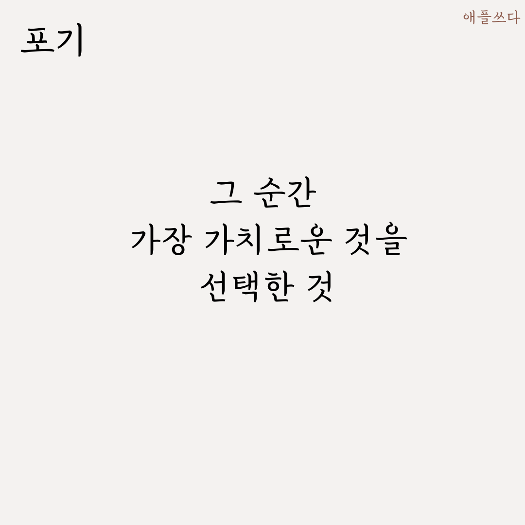 지나온 세월 돌이켜보면 '포기했다' 생각되는 지점이 있습니다. 생각인 줄 알면서도 그 지점에서는 계속 서성이게 됩니다. 포기하지 않았으면 어땠을까? 하는 덧없는 생각이 더해집니다. '내게 가치로운 것을 선택했었구나'라는 관점으로 바라보니 놀랍게도 과거의 어느 장면이 바뀝니다. 그 장면에서 울고 있는 나를 꼭 안아줄 수 있을 것 같습니다. 주먹 꽉 쥐고 있느라 아팠던 과거의 순간들이 흘러갑니다.