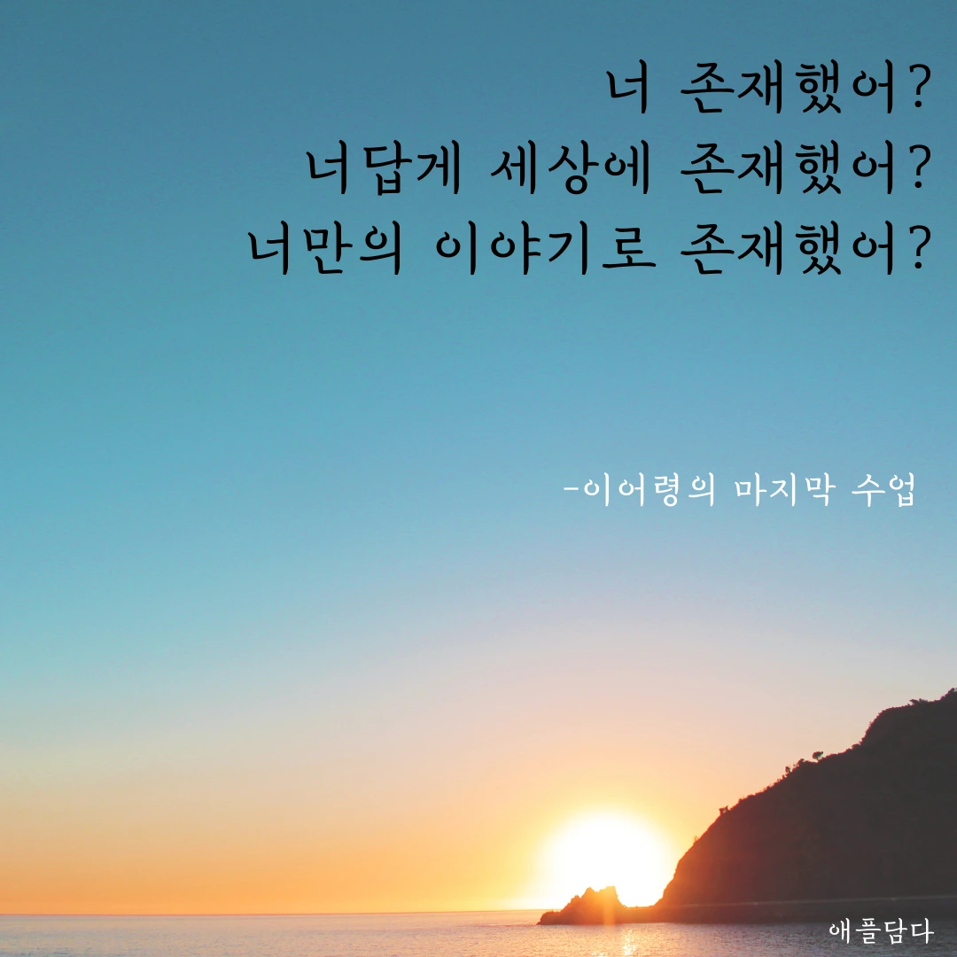 너답게 존재하고 있느냐고 그는 맹렬하게 독자에게 묻는다. 저 홀로 낯선 세상과 마주하라고, 단호하게 내리치며 말한다. 이 질문이 묵직한 이유는, 다른 이가 아닌 '이어령'선생의 질문이기 때문이다. 누구보다 눈부시게 자기 존재성을 발휘하며 한 생을 살아낸, 살아가고 있는, 스러지고 있는 한 존재가 하는 질문이기 때문일 것이다.