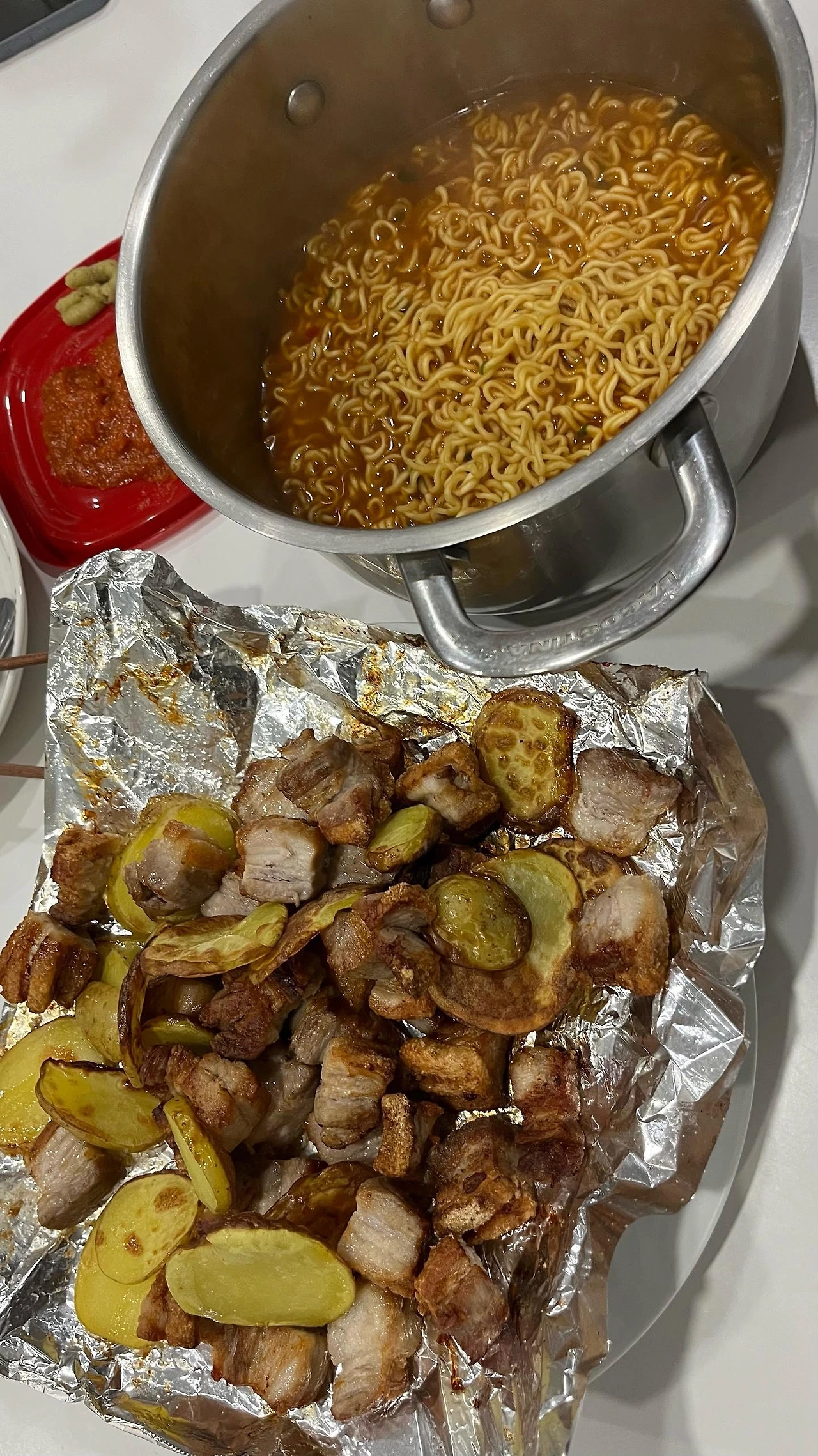- 삼겹살 에어프라이어 구이 + 라면