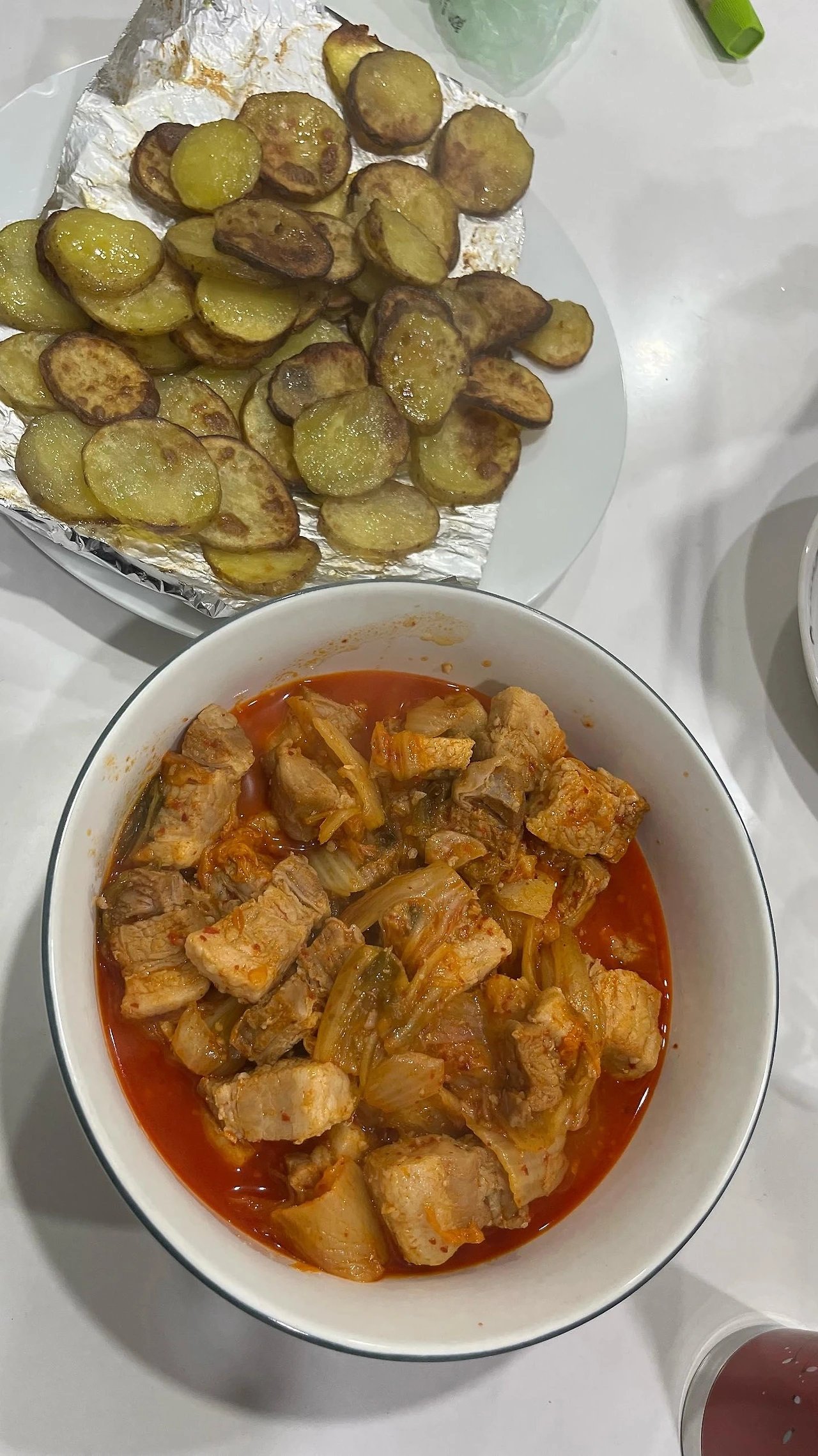 - 삼겹김치찜 + 감자튀김