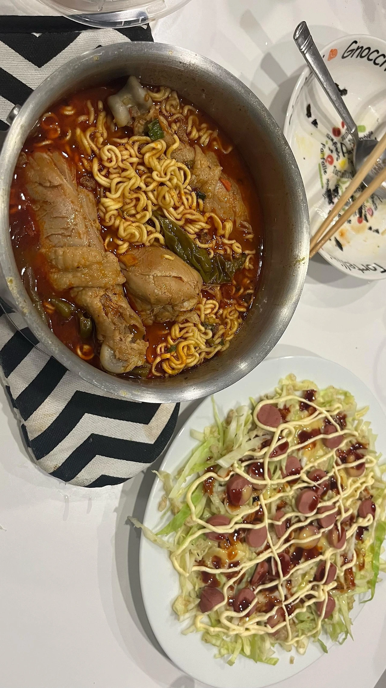 - 닭다리 + 김치 + 라면스프탕