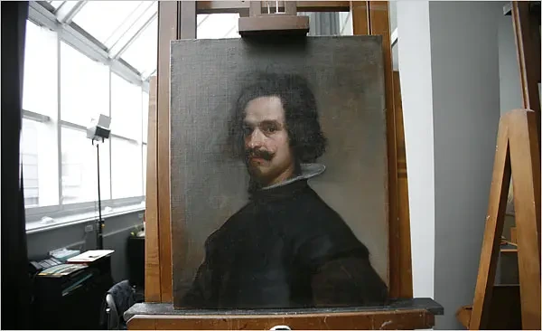 메트로폴리탄 미술관으로 넘겨진 이후에도 벨라스케스가 그린 자화상이 맞는지에 대한 논란은 끊이지 않는다. 1955년 그림에 보호층을 입혀주고 색상과 광택을 향상시키기 위해 바니쉬 varnish 를 발라 주는데 당시 두껍고 노랗게 변한 바니쉬로 벨라스케스 대가의 그림 일리가 없다고 의문을 제기한다. 1963년 벨라스케스 전문가인 호세 로페스-레이 José López-Rey 는 이 작품을 ‘벨라스케스 방식에 가깝게 그린 학교 작품 School piece ’으로 분류했다. 다시 한번 1979년 메트로폴리탄 미술관은 이 작품을 벨라스케스의 작품에서 ‘벨라스케스의 작업장 Workshop 에서 만들어진 작품’으로 강등시킨다. 2009년에야 비로소 메트로폴리탄 미술관은 그동안 변색된 바니쉬와 1925년부터 광범위하게 진행되어 왔던 리터칭을 모두 제거하고 나서야 거장 벨라스케스 그림이 드러났다고 발표한다. 또 다른 벨라스케스 학자인 조나단 브라운 또한 이 그림을 벨라스케스가 그린 벨라스케스의 자화상이 맞다고 컨펌한다. 그 이후 작품명은 지금의 ‘아마도 그의 자화상 Possibly a Self-Portrait’ 이라고 수정되어 붙여진다.