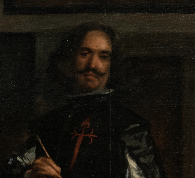 왼쪽: 디에고 벨라스케스의 ‘시녀들 Las Meninas’ 작품 속 화가의 모습, 오른쪽: 디에고 벨라스케스의 ‘한 남자의 초상, 아마도 자화상 Portrait of a Man, Possibly a Self-Portrait’
