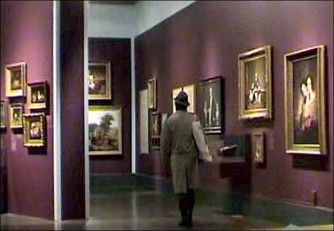 조력자에 의해 촬영된 메트로폴리탄 미술관 벽에 가짜 작품을 걸고 있는 뱅크시 03/13/2005 Courtesy of Wooster Collective