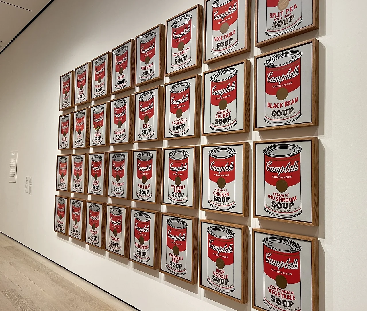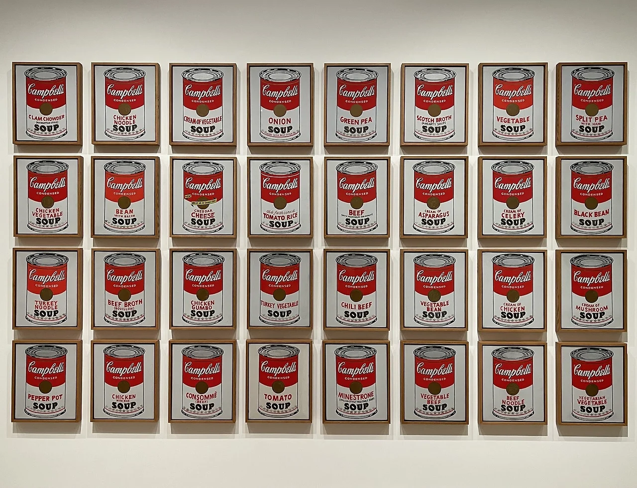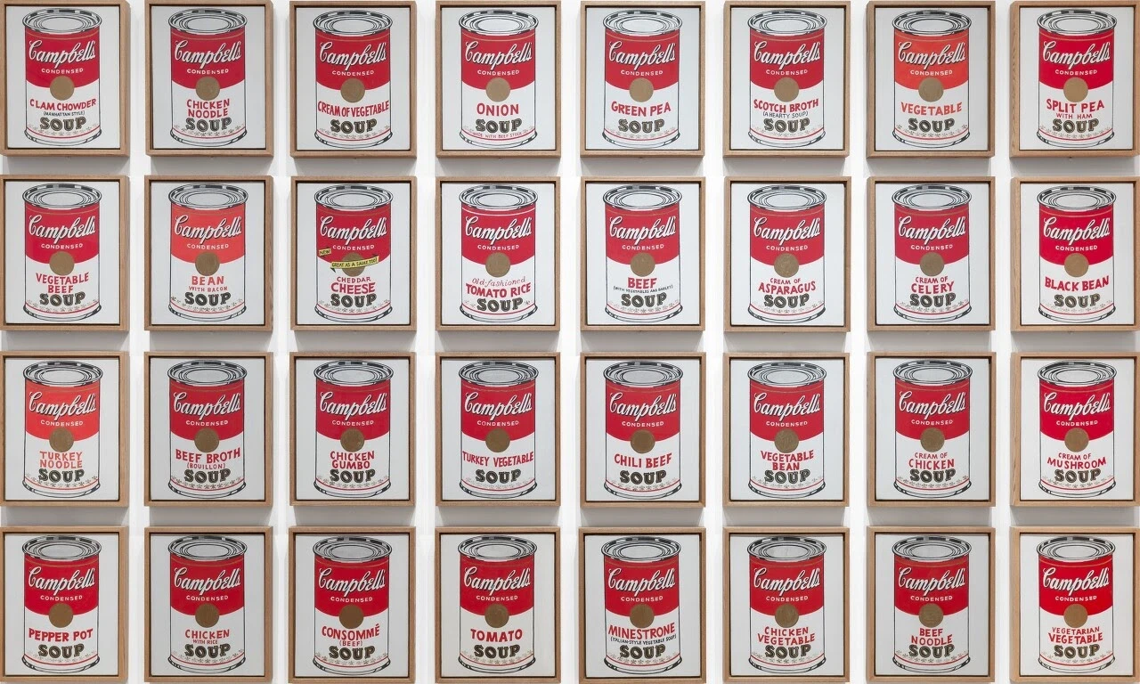 1961년 11월에서 시작하여 1962년 3,4월에 완성한 앤디 워홀의 캠벨 수프 캔은 이 작품을 처음 전시했던 LA의 페러스 갤러리 Ferus Gallery의 어빙 블럼 Irving Blum이 낱개로 몇 개 팔았다가 32개 한 세트로 팔아야 더 가치가 있다는 것을 뒤늦게 깨닫고 다시 사들여 32개를 완성한 다음, 세트로 구성된 작품에 기뻐하는 앤디 워홀에게 32개 작품 모두를 10개월 동안 $1,000을 지불하기로 동의한다. 1987년 앤디 워홀이 사망한 후, 블럼은 모마 MoMA에 32개 한 세트 모두를 약 $1,500만 달러 (약 170여 억 원) 이상에 판매한다.