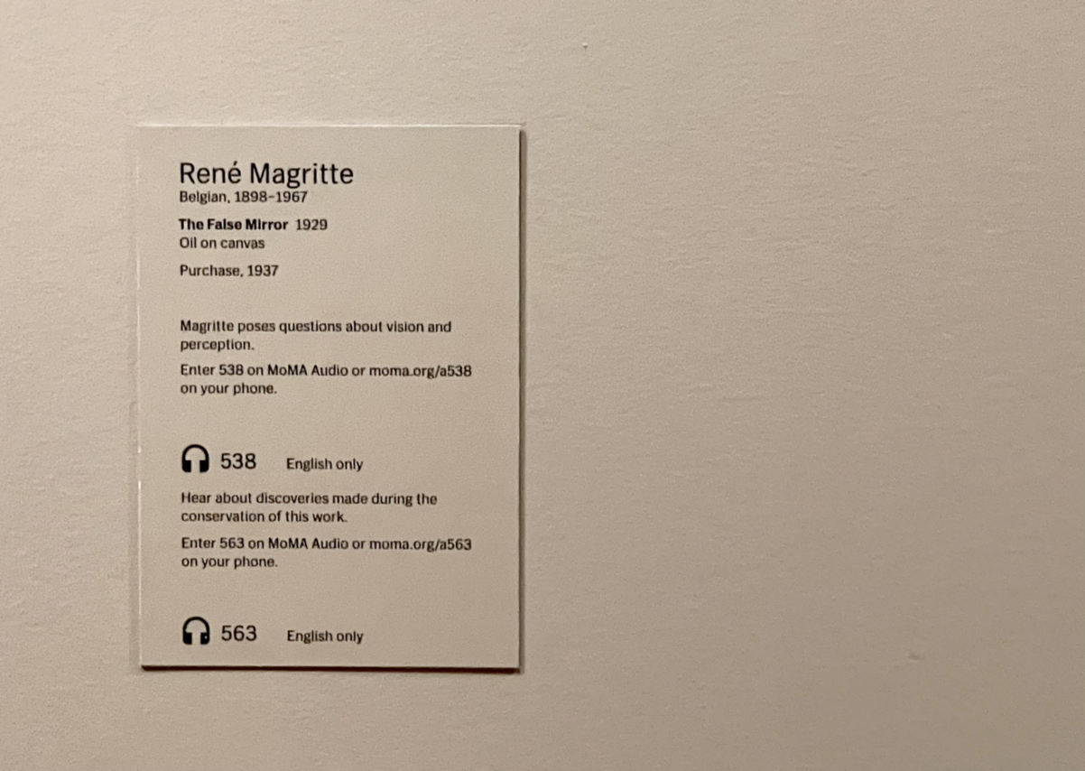1929년에 그린 위 작품은, 1933 - 1936년 초현실주의 사진작가인 맨 레이 Man Ray 가 소유하였고 이후 모마 MoMA 가 구매하면서 영구 소장하게 된다. 모마 미술관 5층인 The Alfred H. Barr, Jr. Galleries 전시실에서 볼 수 있다.